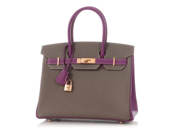$328.00In a fabulous combination of colors, Hermès’ SO Etain and Anemone Epsom Birkin 30 is a showstopper even before you spot the coveted horseshoe stamp! This special order is crafted from Epsom leather in cool Etain and purplicious Anemone with Gris Perle contrast stitching and rose gold hardware in the…