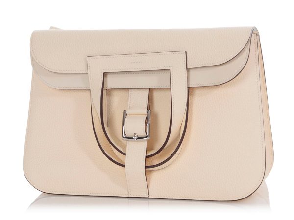 $328.00Hermès’ Nata Togo Halzan 31 is a creamy dreamy convertible with transformable style! Made from Togo leather in an off-white hue, it features palladium hardware and top handles with a 4-inch drop. The adjustable strap is shown with a 21-inch crossbody drop, letting you wear it three ways—by hand, across…