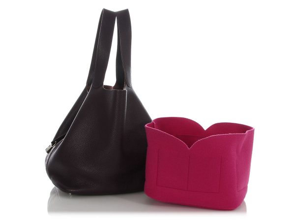 $328.00Hermès’ Raisin Clémence Picotin Lock TGM is an effortlessly chic bucket bag with room for everything and then some! Carried by dual top handles with a 9-inch drop, its softly slouchy silhouette cinches with leather strap ends that feed through a palladium lock, while the unlined interior and sturdy leather…
