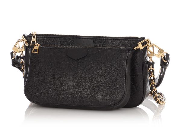 $240.00Louis Vuitton’s Black Monogram Empreinte Multi-Pochette is two gorgeous bags in one! Made of logo-embossed leather with gold hardware, this duo consists of two zipped pouches with two straps—a detachable chain strap with a 12.5-inch drop and a detachable, adjustable leather strap shown with a 10-inch drop. They’re both lined…