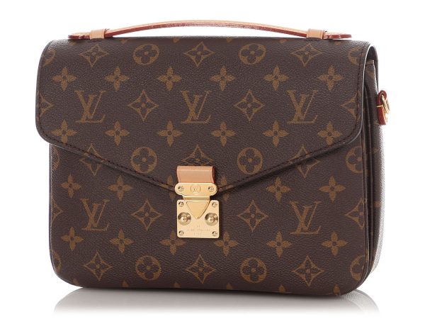 $240.00Louis Vuitton’s Monogram Pochette Métis pulls double duty as a clutch and crossbody with infallible style! Crafted from brown coated canvas with gold-tone hardware, natural leather trim, and a flat leather top handle with a fingers-only 1-inch drop, it hangs hands-free from the detachable, adjustable monogram strap shown with a…