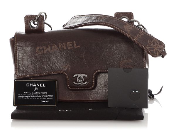 Chanel’s Vintage Coco Mademoiselle Graffiti Flap is made of brown distressed leather with ruthenium hardware! It has a flap with a logo turnlock that opens to a slide pocket on the face, a black-logo-fabric interior with one zipped pocket, and a slide pocket on the back face. The large-linked chain…
