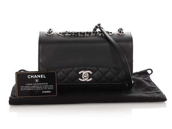 Chanel’s Small Black Part-Quilted Lambskin Tramezzo Flap is a stylish crossbody made with diamond-quilted leather on the side panels, rear pocket, and bottom edge of the flap and then smooth leather on the front, rear, base, and flap! It’s paired with silver-tone hardware in the leather-and-chain strap with a leather…