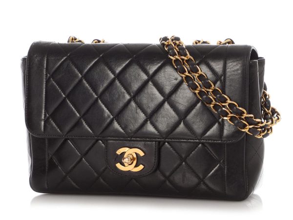 Chanel’s Vintage Extra Large Black Quilted Lambskin Classic Flap is a blast from the past from 1994-96 in buttery-soft lambskin! It’s classically paired with gold-tone hardware in the logo turnlock and leather-and-chain strap with a shoulder drop of 13 inches when doubled or worn singly as a crossbody with a…