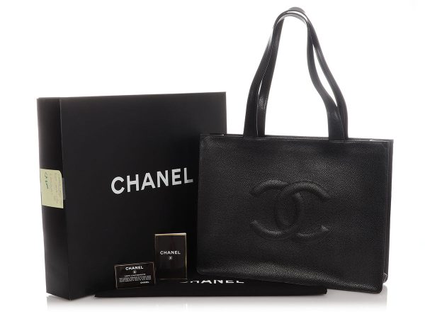 This Chanel Vintage Black Caviar Tote more than lives up to its XL designation! It’s paired with gold-tone hardware and has a logo-stitched front, open top, and black-leather lining with one zipped pocket inside. The dual flat-leather handles have a generous 11.5-inch shoulder drop. In great condition from 1997-99, it…