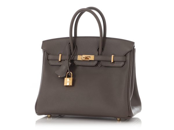 Just as the night sky sometimes seems black, Hermès’ Bleu Nuit Togo Birkin 25 reads black, but it’s really dark, dark blue! Paired with palladium feet and hardware, the flap’s straps and turnlock can be secured with the included padlock and keys kept in the leather clochette. The tonal-leather-lined interior…