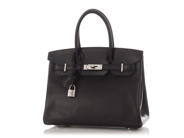 I’d put this Hermès Black Togo Birkin 30 on the same level as a little black dress—it’s an indispensable element of a sophisticated wardrobe! The flap secures with a palladium Hermès turnlock and opens to tonal leather lining with one zipped pocket and one slide pocket inside. The dual rolled…