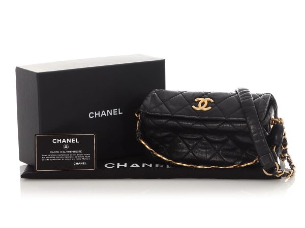 $238.00This Chanel Black Quilted Goatskin 19 Flap makes its presence known in Maxi sizing! Large diamond quilting is paired with three different metals—antiqued gold, silver tone, and ruthenium—in the chunky chain handle with a 5.5-inch drop and the shoulder strap with a 14.5-inch drop. The logo turnlock is made of…