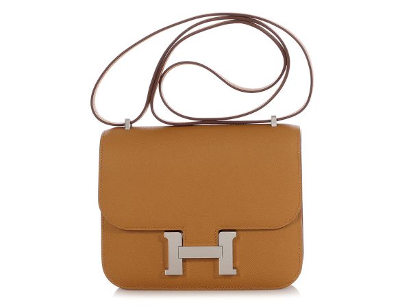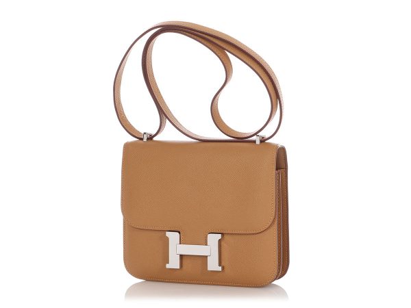 Hermès’ Sesame Epsom Constance 18 is a trim-looking crossbody with a 20.5-inch drop! It’s paired with palladium hardware in the clasp that opens the flap by lifting the center of the H. The tonal-leather-lined interior is divided into two sections with one slide pocket in each. When the flat strap…