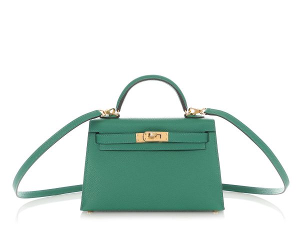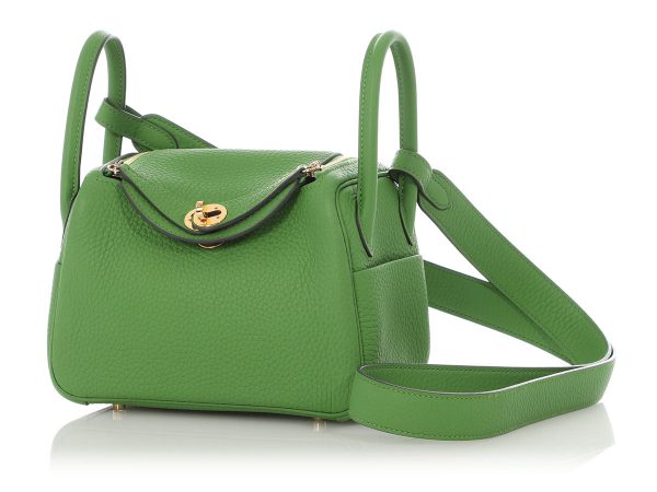 The fresh, green color and small size of Hermès’ Mini Vert Yucca Clémence Lindy 20 add to its overall covetability! Paired with gold-tone feet and hardware, it has a flat top flap with two zippers that meet at a center turnlock. There are two slide pockets in the tonal-leather-lined interior…