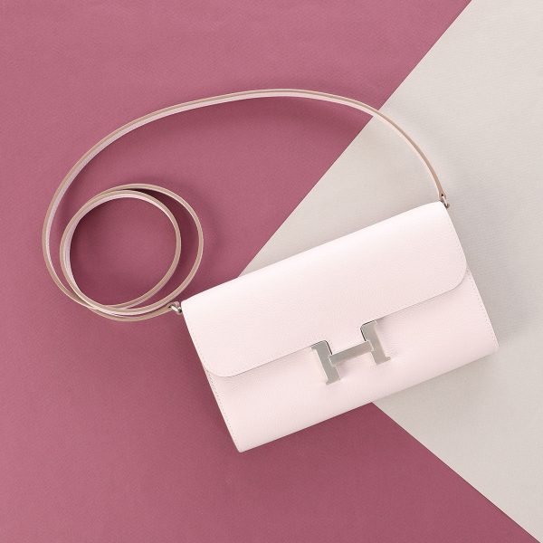 $328.00Hermès’ Mauve Pale Evercolor Constance To Go is a soft-spoken stunner with hands-free flexibility! Made from Evercolor leather in a delicate pink hue, this convertible is accented with a palladium H clasp that opens by lifting the center bar to reveal a slide pocket on the face and a tonal-leather…