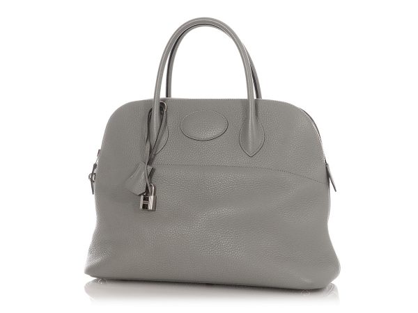 $328.00Hermès’ Gris Mouette Clémence Bolide 35 is a slouchy and stylish travel companion in a versatile neutral hue! Crafted from gray leather with palladium hardware, it features a zipped top, dual rolled handles with a 4-inch drop, and classic details like the leather clochette with lock and keys. The spacious…