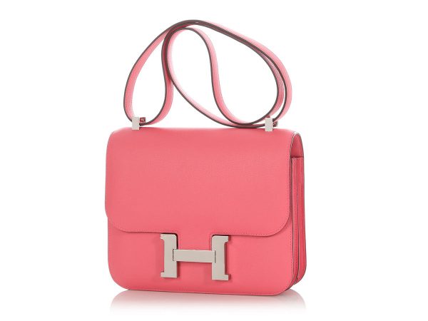 $328.00Hermès’ Rose Jaipur Clémence Evelyne TPM is a little workhorse in a coral-pink color! It’s paired with palladium hardware and the front face has the iconic perforated H giving its heritage away and the open top leads to an unlined interior with no pockets. A small tab flap partially secures…