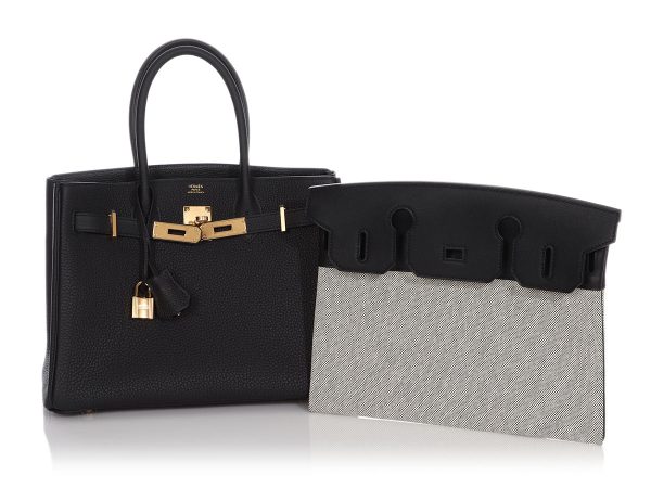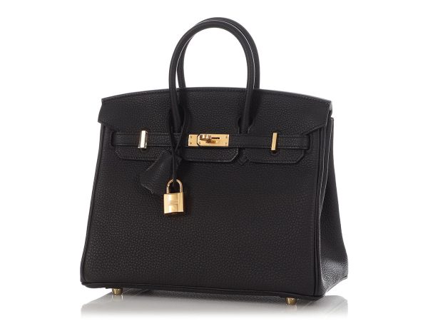 $328.00In its combination of black leather with gold-tone feet and hardware, this Hermès Black Togo Birkin 30 meets the gold standard of covetability! It’s paired with gold-tone feet and hardware in the turnlock, padlock, and keys that come with a leather clochette for storage. The flap opens to black-leather lining…