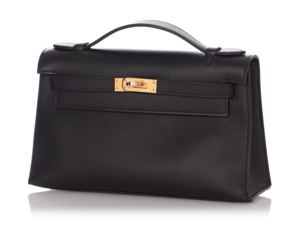 $328.00Hermès’ Black Swift Kelly Pochette is a brand-new clutch that’s a dead ringer for a larger top handle! It’s classically paired with gold-tone hardware in the plaques and turnlock that opens the flap to black-leather lining with one slide pocket inside. New and never worn from 2022 (U stamp), it…