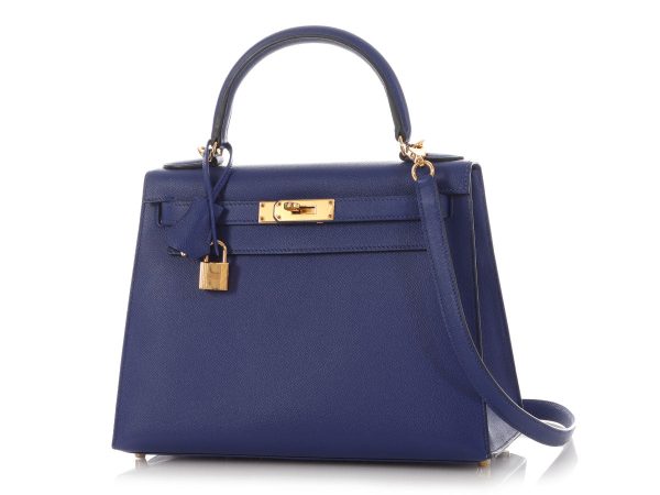$328.00There’s nothing but blue skies ahead with Hermès’ Bleu Azur Epsom Kelly 28 on your arm! This Sellier-styled bag is paired with palladium feet and hardware in the turnlock, padlock, and keys kept in the leather clochette. Tonal-leather lining reveals one zipped and two slide pockets inside. In excellent condition…