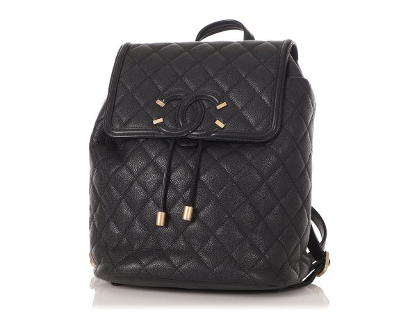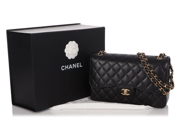 Chanel’s Jumbo Black Quilted Caviar Classic Double Flap is timeless in a very roomy size! The durable Caviar leather is paired with silver tone hardware in the leather-and-chain strap with a shoulder drop of 12.5 inches and, when let out to its full length, a 23-inch crossbody drop. A logo…