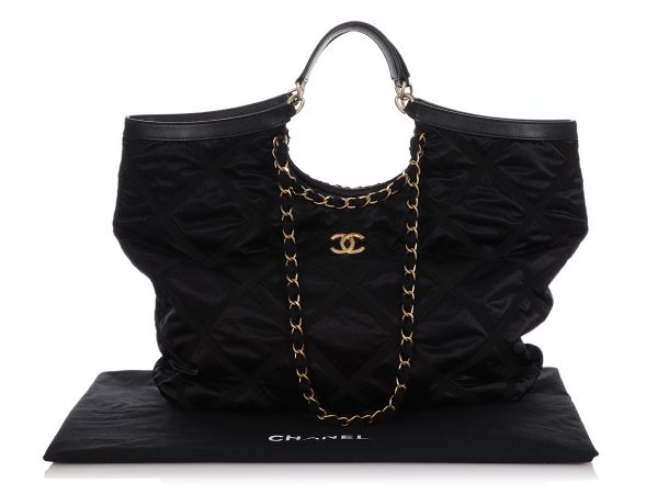 This Chanel Black Quilted Goatskin 19 Flap makes its presence known in Maxi sizing! Large diamond quilting is paired with three different metals—antiqued gold, silver tone, and ruthenium—in the chunky chain handle with a 5.5-inch drop and the shoulder strap with a 14.5-inch drop. The logo turnlock is made of…