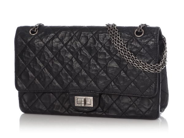 This Chanel Black Quilted 2.55 Reissue 227 has a great feel thanks to the distressed calfskin! It’s accented with antiqued silver-tone hardware in the Reissue push turnlock and all-chain bijoux strap with a shoulder drop of 10.5 inches when doubled and a crossbody drop of 19 when worn singly. The…