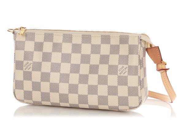 $240.00Louis Vuitton’s Damier Azur Pochette Accessoires NM is a cute little convertible that can be styled as a shoulder bag, clutch, or wristlet! Made of blue-and-white checkered canvas with natural leather trim and gold hardware, it hangs from a detachable leather strap with a 9.5-inch drop. Unzip the top and…
